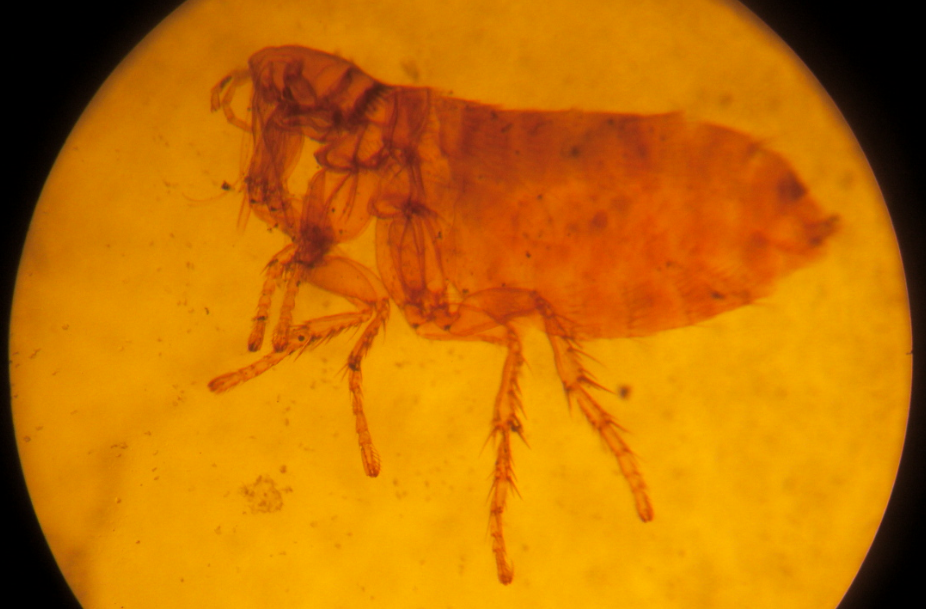 3、貓櫛首蚤(貓蚤)(Ctenocephalides felis):蚤體棕黃色,有眼,頭尖而長。有頰櫛、前胸櫛,頰櫛超過5個,頰櫛的第一齒與第二齒等長。